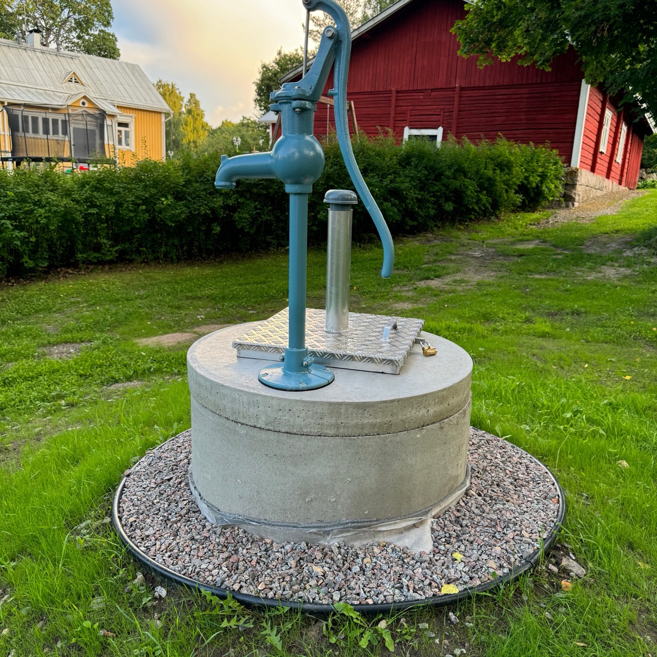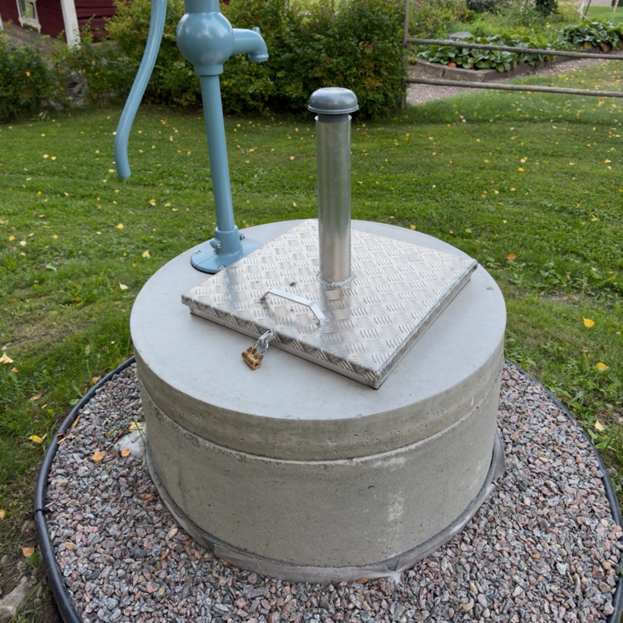Huoltoluukussa on saranoitu rakenne ja lukkosalpa, joka takaa turvallisuuden. Tämä tekee siitä erinomaisen valinnan esimerkiksi lapsiperheiden pihapiiriin.