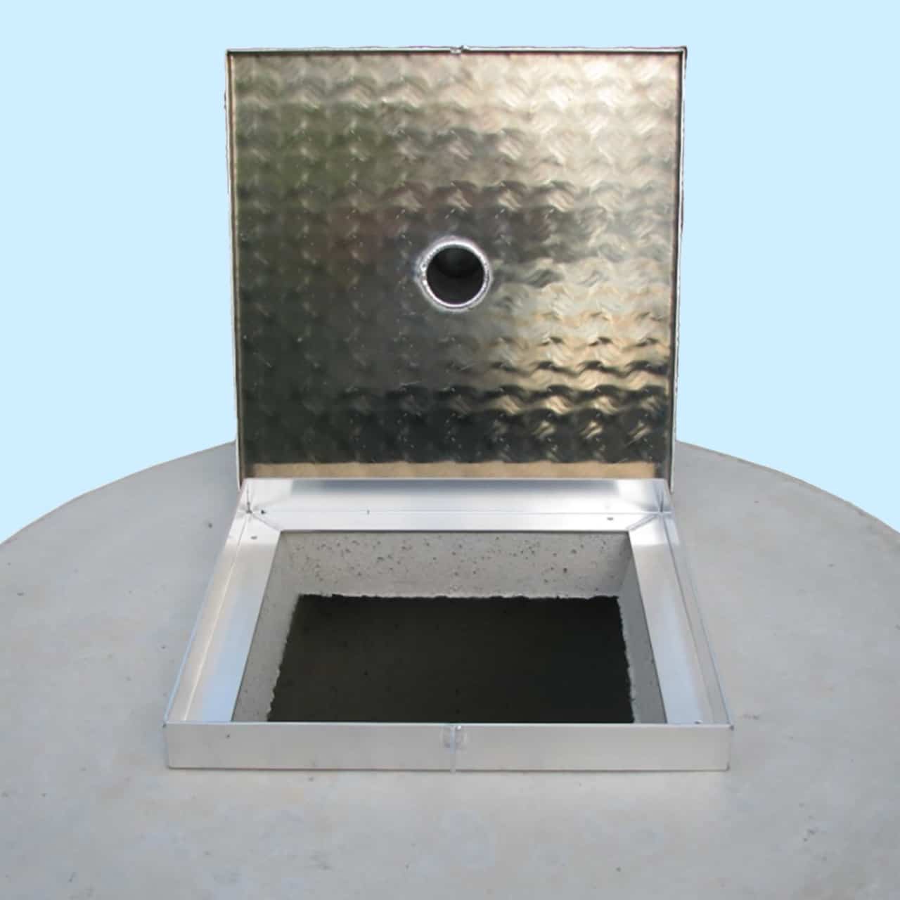 Huoltoluukkuun integroitu tuuletusputki on valmistettu alumiinista (halkaisija 75 mm), ja tuuletusputken hattu on muovia. Tuuletusjärjestelmä on erityisen hyödyllinen juomavesikaivoissa, sillä se estää veden ummehtumista ja vähentää siihen liittyviä maku- ja hajuhaittoja. Tuote kiinnitetään betonikanteen betoniruuveilla tai liimatiivistemassalla (ei toimiteta tuotteen mukana).