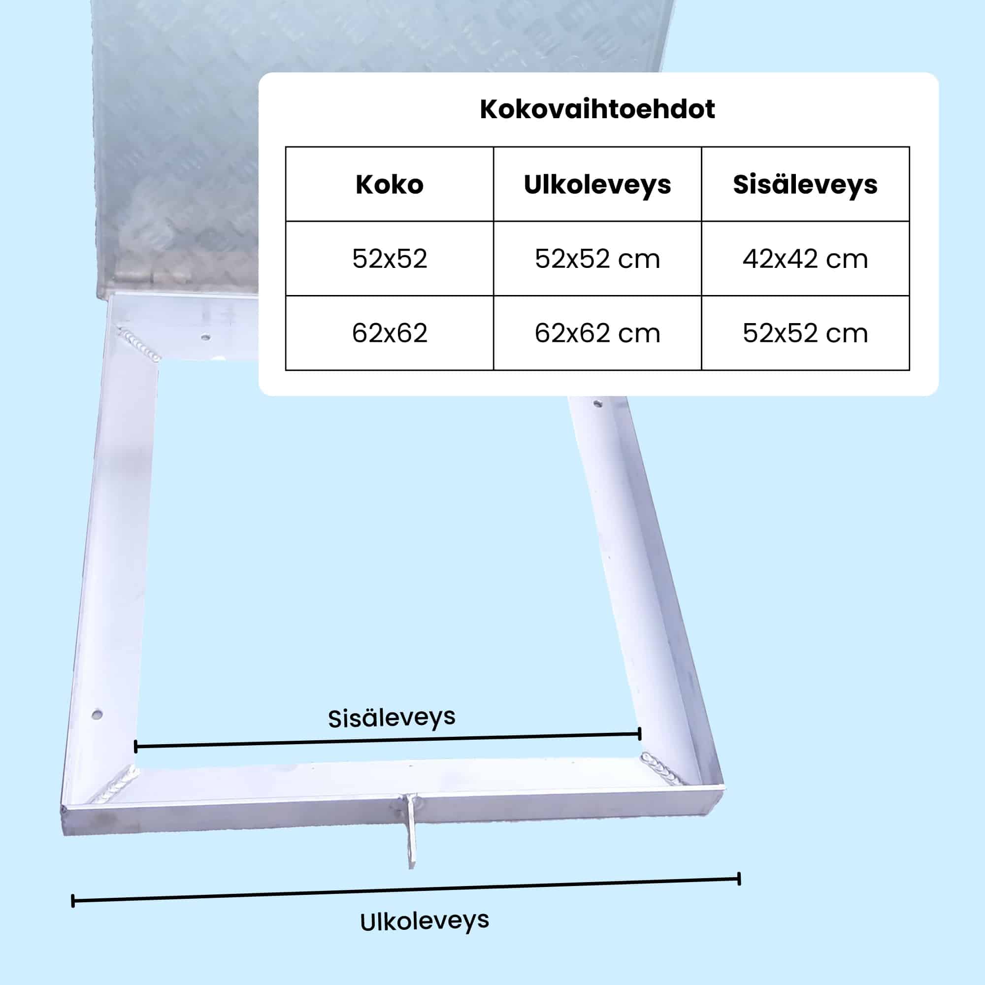 Tämä korkealaatuinen alumiinista valmistettu huoltoluukku on suunniteltu tarjoamaan turvallisen ja kestävän ratkaisun kaivonkannen huoltoaukkoon. Kehyksessä on valmiiksi poratut reiät, jotka tekevät asennuksesta vaivatonta.